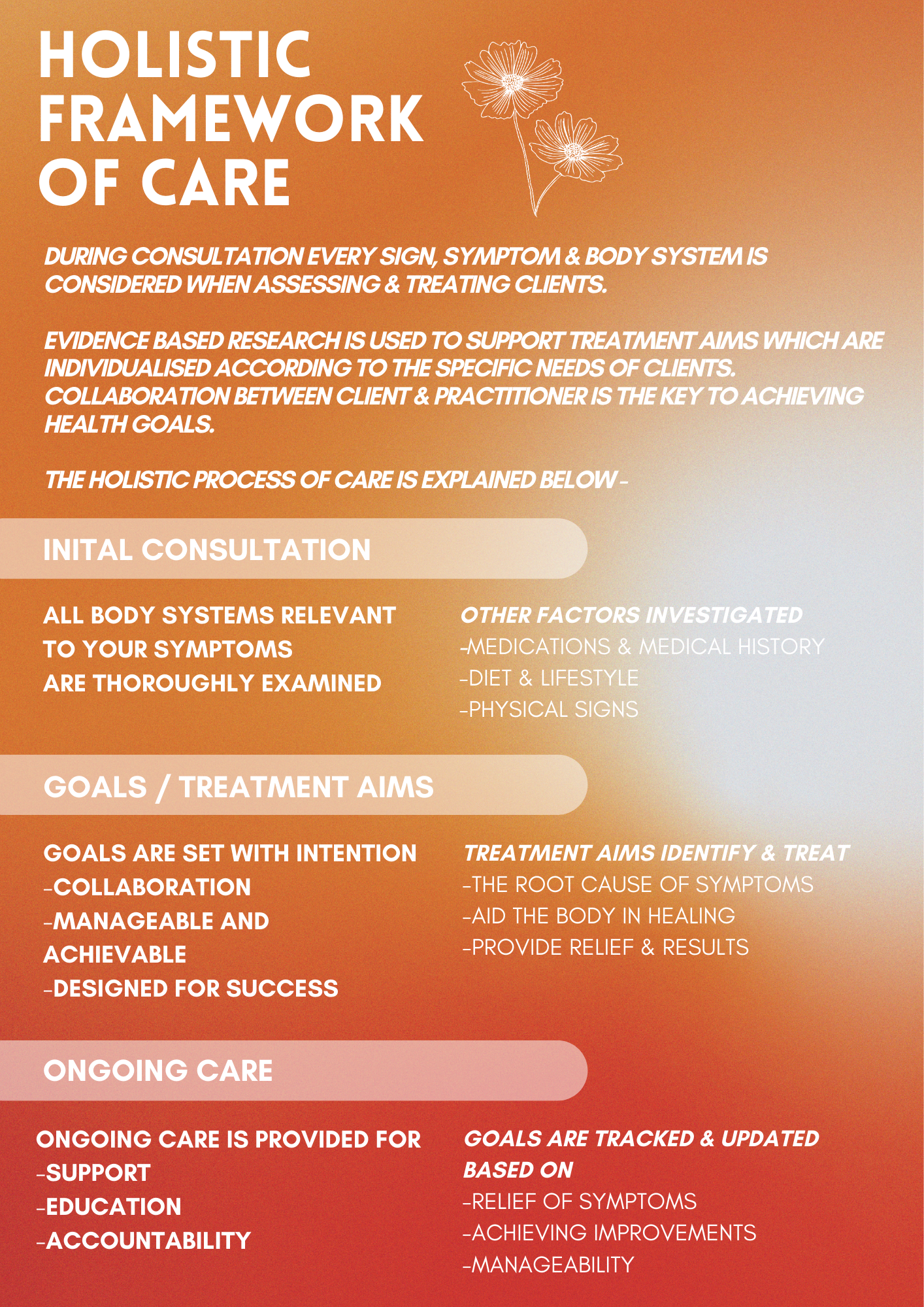 I BELIEVE EDUCATION IS THE KEY TO CREATING SUSTAINABLE CHANGE, AND MY GOAL WITH EVERY CLIENT IS TO EMPOWER THEM TO UNDERSTAND THEIR BODY AND WHAT IT NEEDS, IN ORDER TO ACHIEVE HEALTH GOALS AND TO FEEL THEIR BEST.